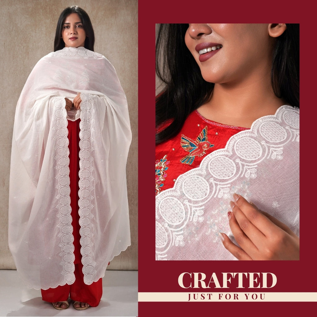 Fabric: Pure Cotton Mulmul Pattern: Embroidered Length: 2.45 meters Width: 38–40 inches Dispatch Time: 2–4...